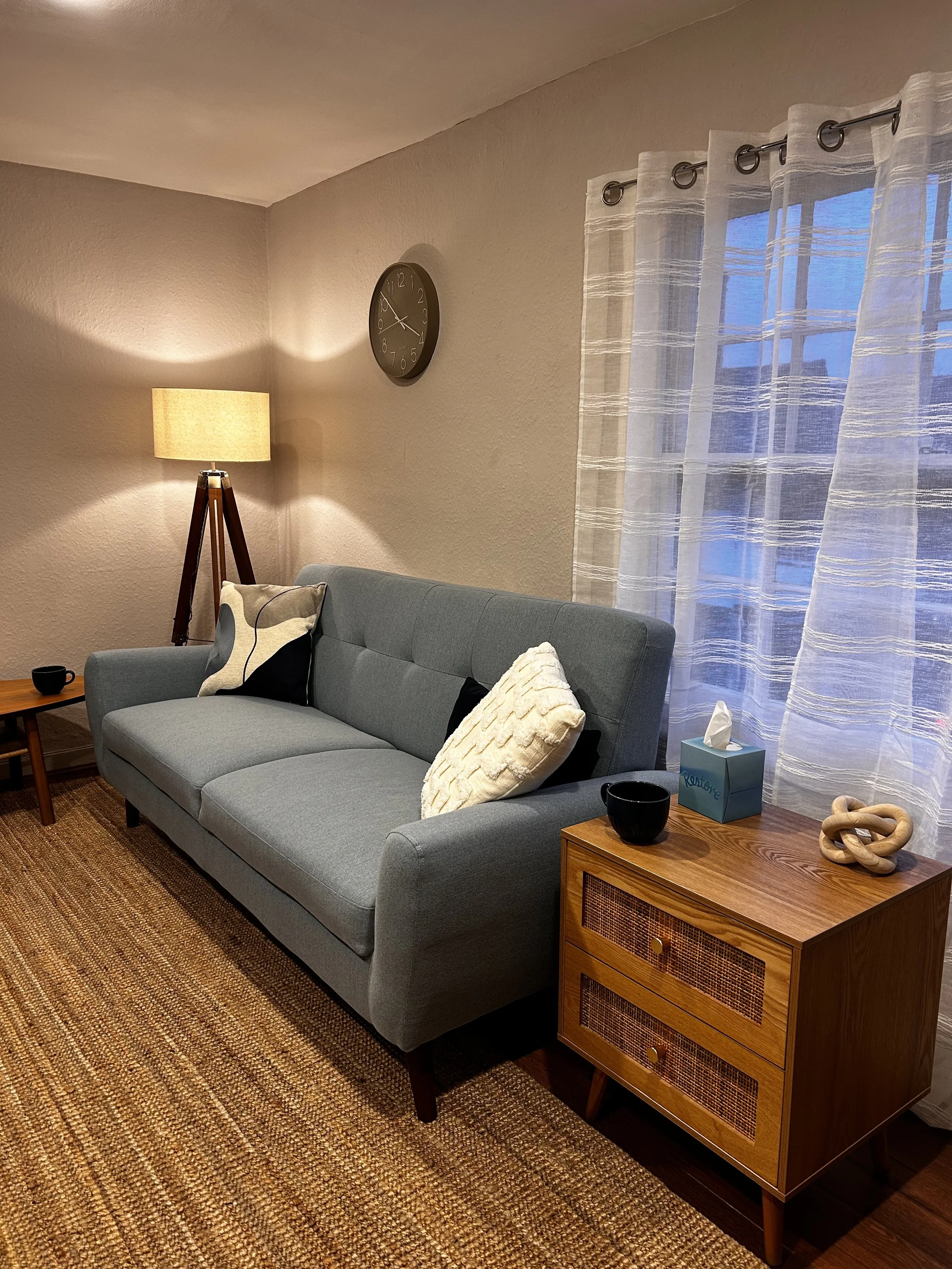 Our therapy rooms have been thoughtfully designed to offer a space where both therapists and clients can truly thrive. Every detail - from the calming colour palette and soft lighting to the carefully selected furnishings - has been chosen to create an atmosphere of comfort, safety and ease.